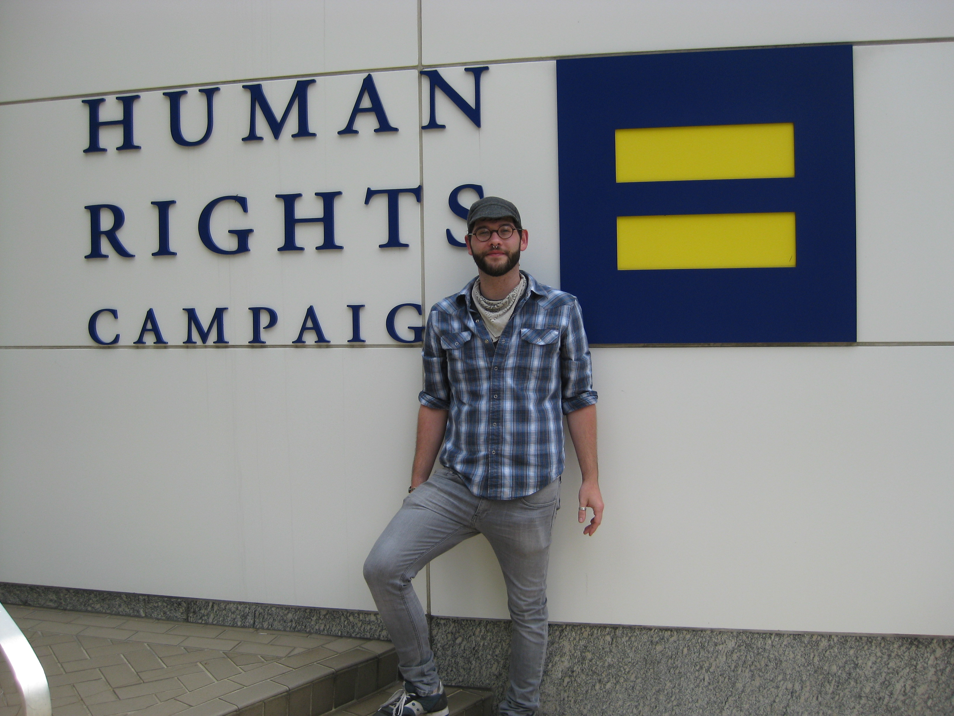 We didn’t quite make it to Washington DC last night, as we got a late start and I needed to stop driving around 2:30AM. We pulled off the highway about an hour outside of the capital and slept in the van at a gas station. We still have a lot of organizing to do, so sleeping in the van was not all that comfortable. But we were very tired and feel asleep pretty quickly. In the morning we woke up and headed into the city. The traffic was terrible, but we made it to our first interview at the Human Rights Campaign (HRC).