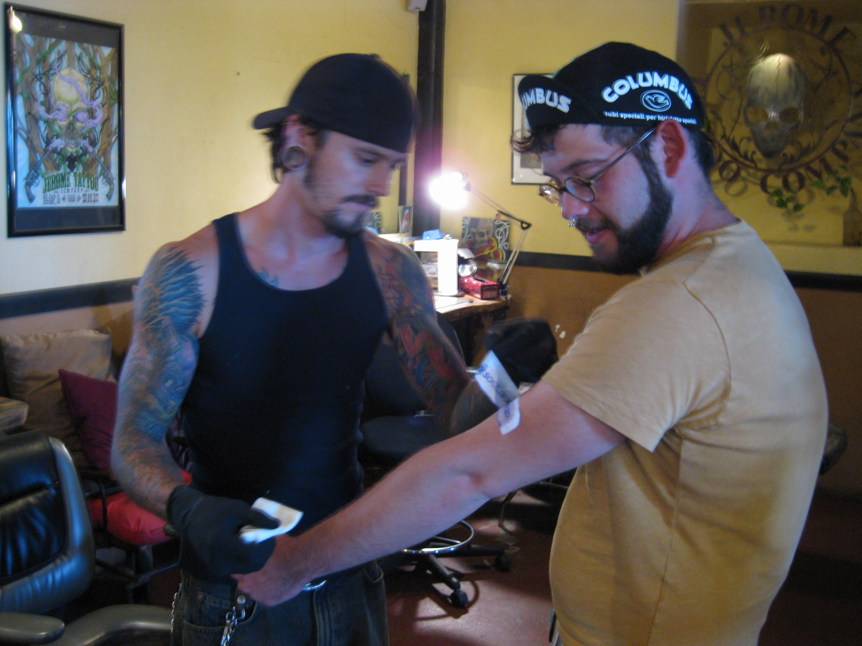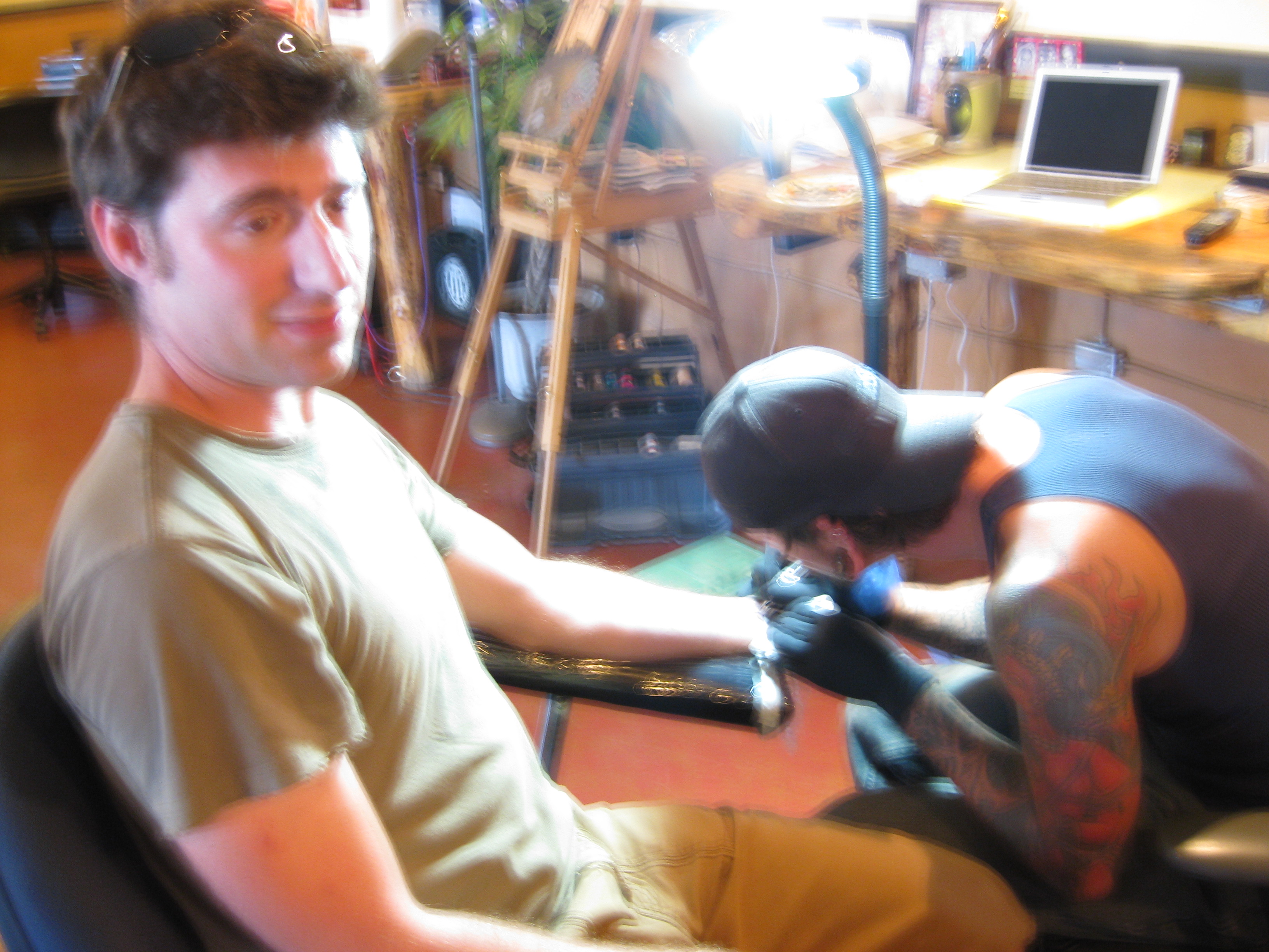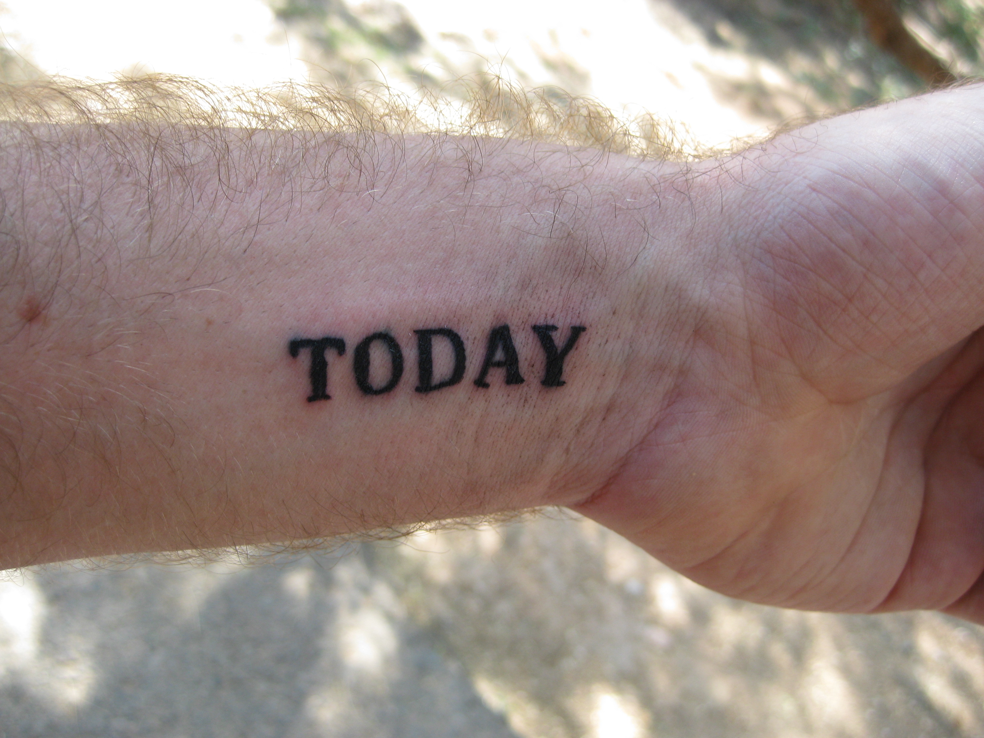 I decided that if I was to get a tattoo, it would have to be in Jerome. Potter and I headed up the mountain and into the tattoo parlor. I was first. It took about 15 minutes and hurt like hell. It was my first tattoo. Then it was Potter’s turn. He already had two other tattoos. Potter got “MY SOUL IS RESTED” on his right arm. It is a saying from the Civil Rights Movement. He can explain it better on his blog which should be up and running soon. (I’ll put a link in as soon as it’s up.) I got “TODAY” tattooed on my left inner wrist. It is how I view life; Live for today. I’ll post more tattoo photos as soon as I upload them from Potter’s camera.