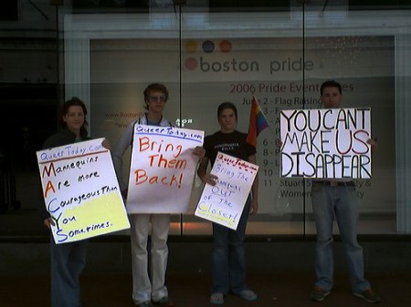 Protesting Macy’s removal of “gay” themed window because of complaints from an anti-gay organization.